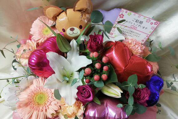 七彩 Floral art & Designでは、バルーンと新鮮な生花を組み合わせた華やかなアレンジメントをご提供しています。